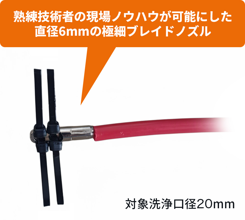 これまで困難だった細径・特殊配管の洗浄も可能になりました!