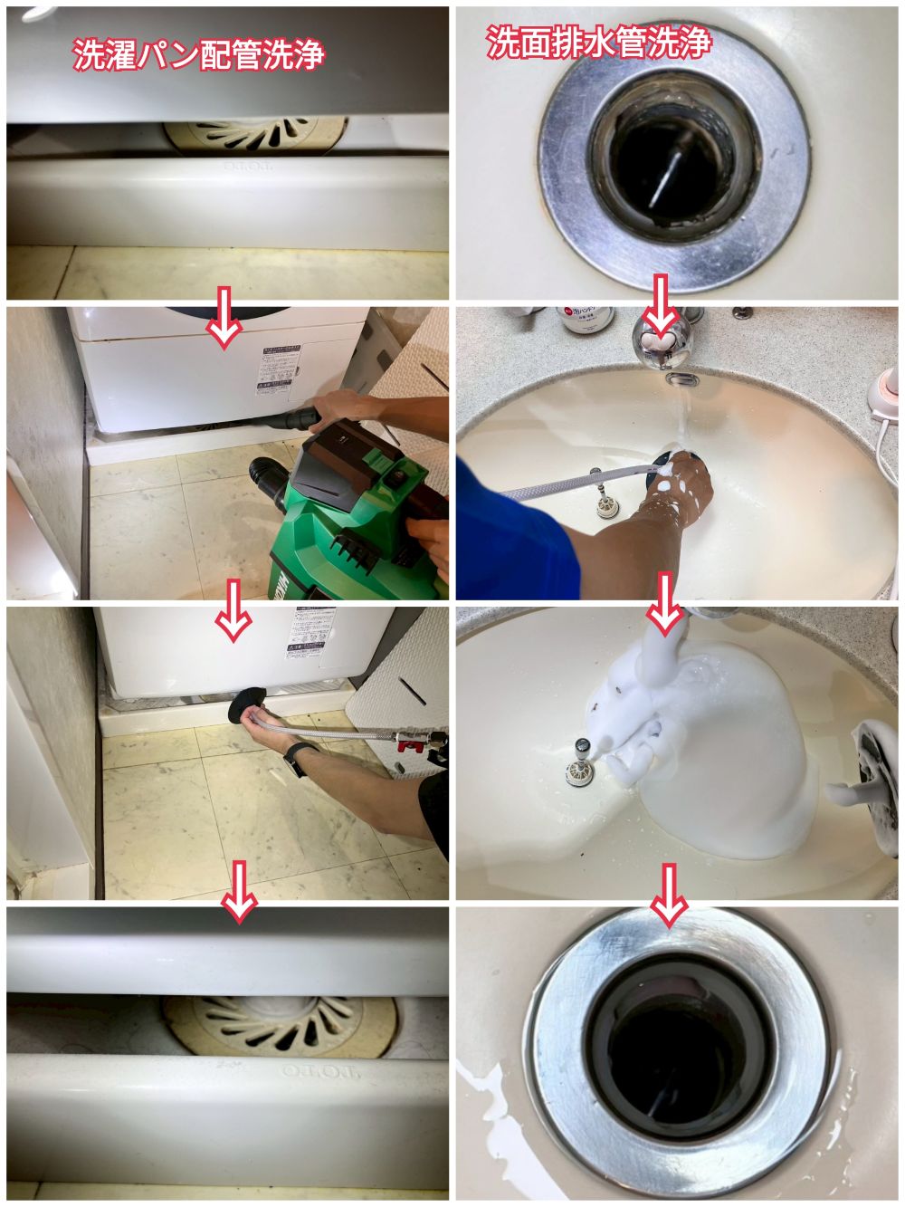 排水管低圧ムース洗浄(台所・洗濯・浴槽・洗面所の各排水管の4点洗浄)
