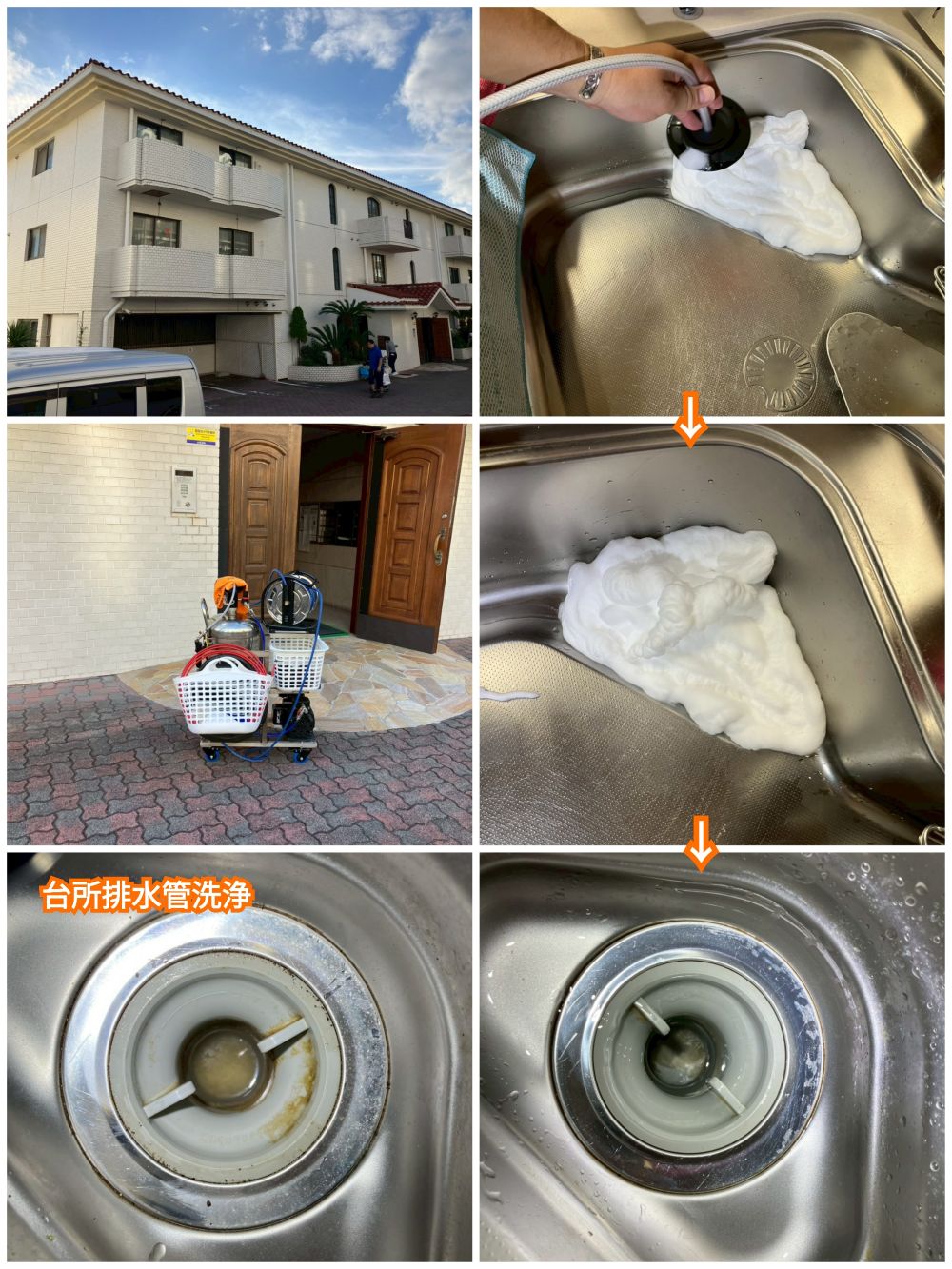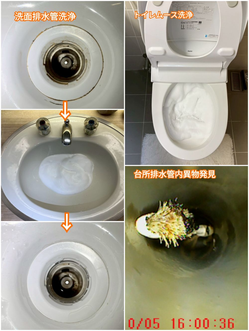 排水管低圧ムース洗浄(台所・洗濯・浴槽・洗面所の各排水管の4点洗浄)