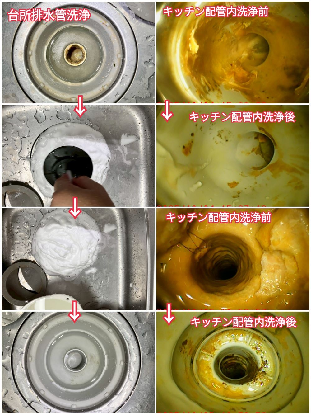 排水管低圧ムース洗浄(台所・洗濯・浴槽・洗面所の各排水管の4点洗浄)