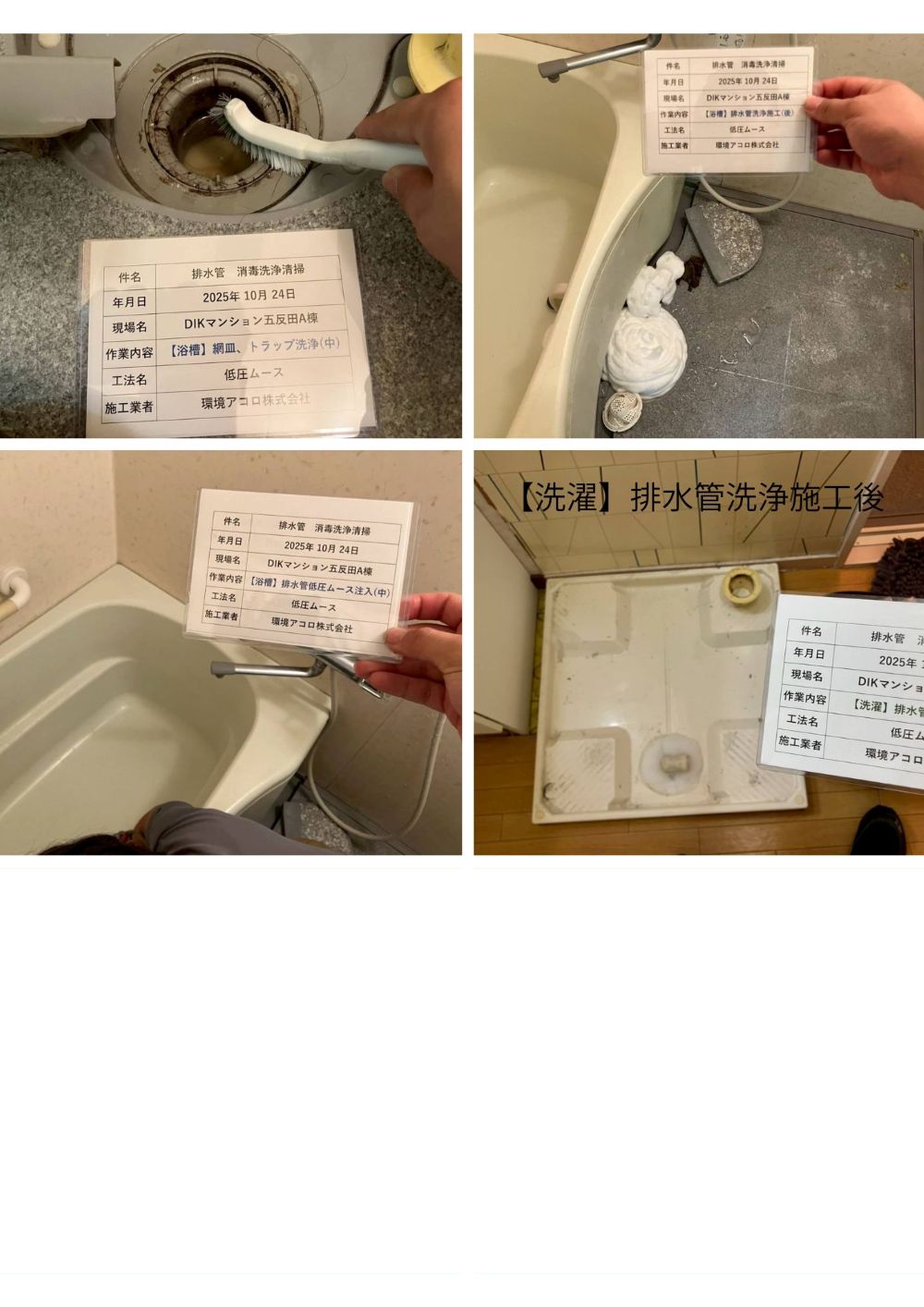 排水管低圧ムース洗浄(台所・洗濯・浴槽・洗面所の各排水管の4点洗浄)