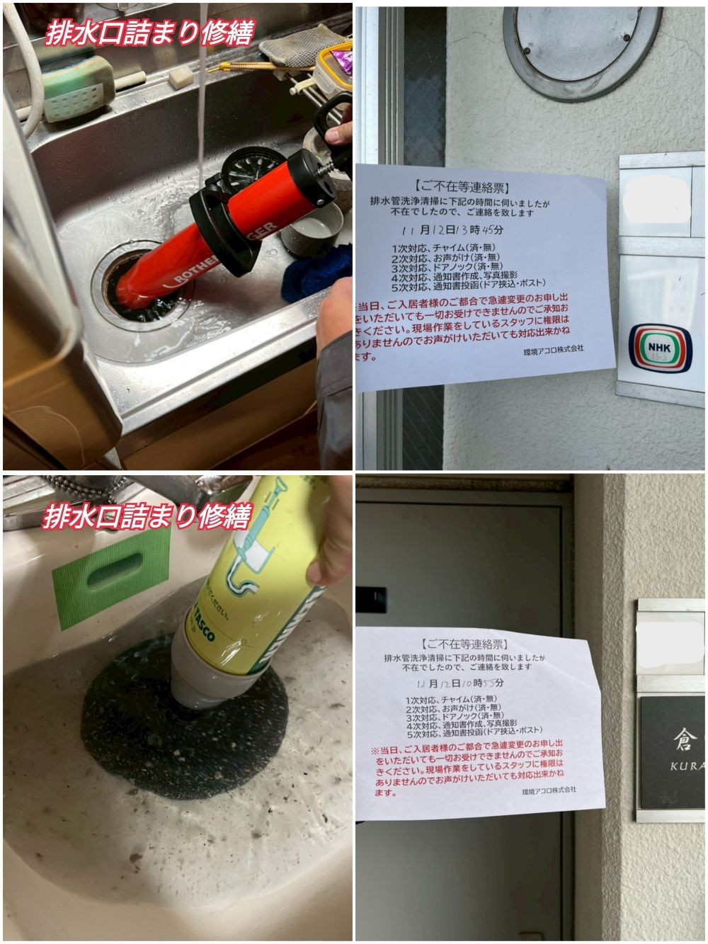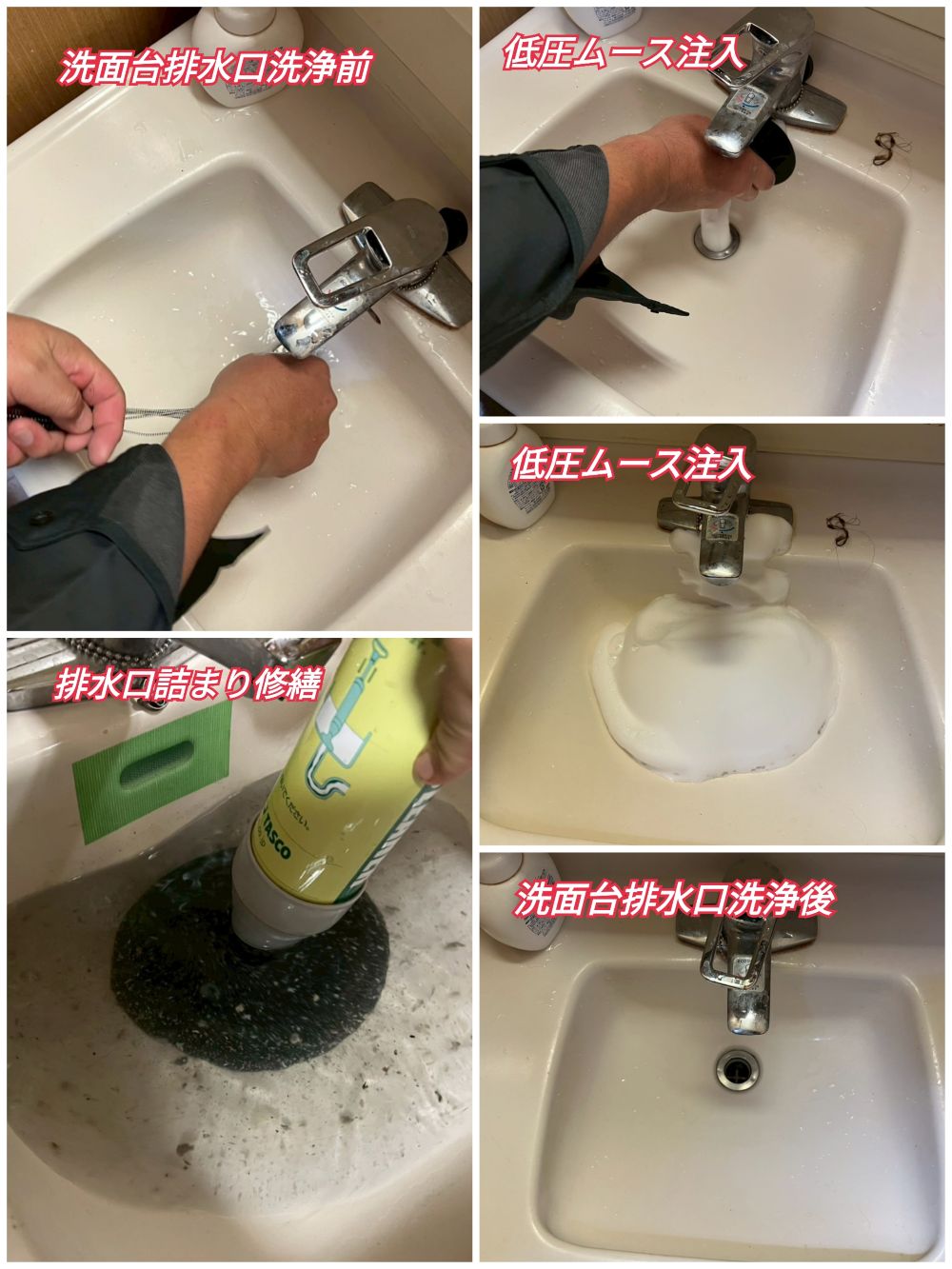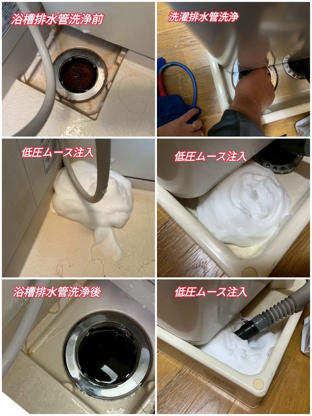 排水管低圧ムース洗浄(台所・洗濯・浴槽・洗面所の各排水管の4点洗浄)