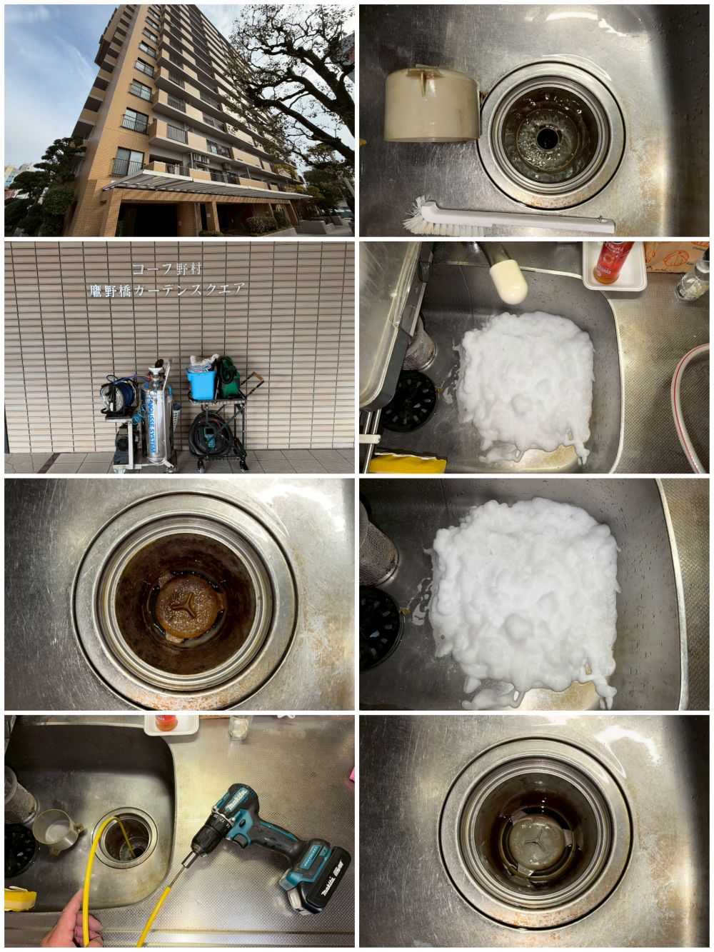 排水管低圧ムース洗浄(台所・洗濯・浴槽・洗面所の各排水管の4点洗浄)