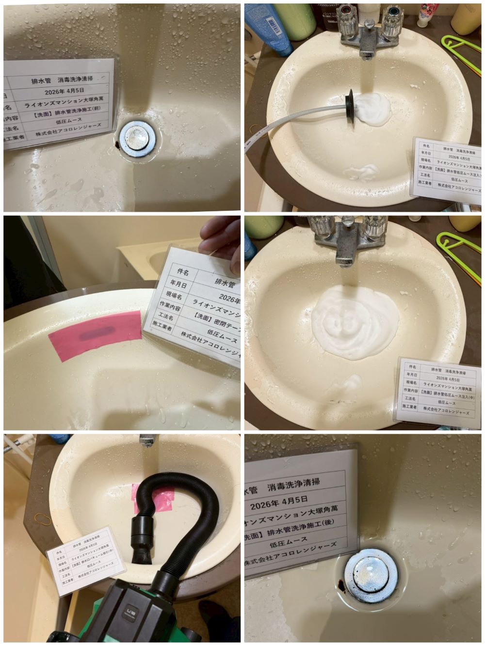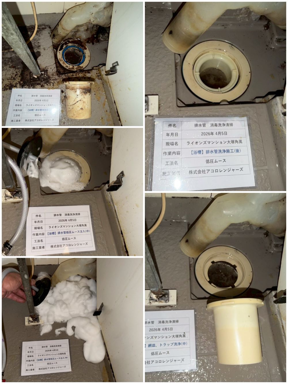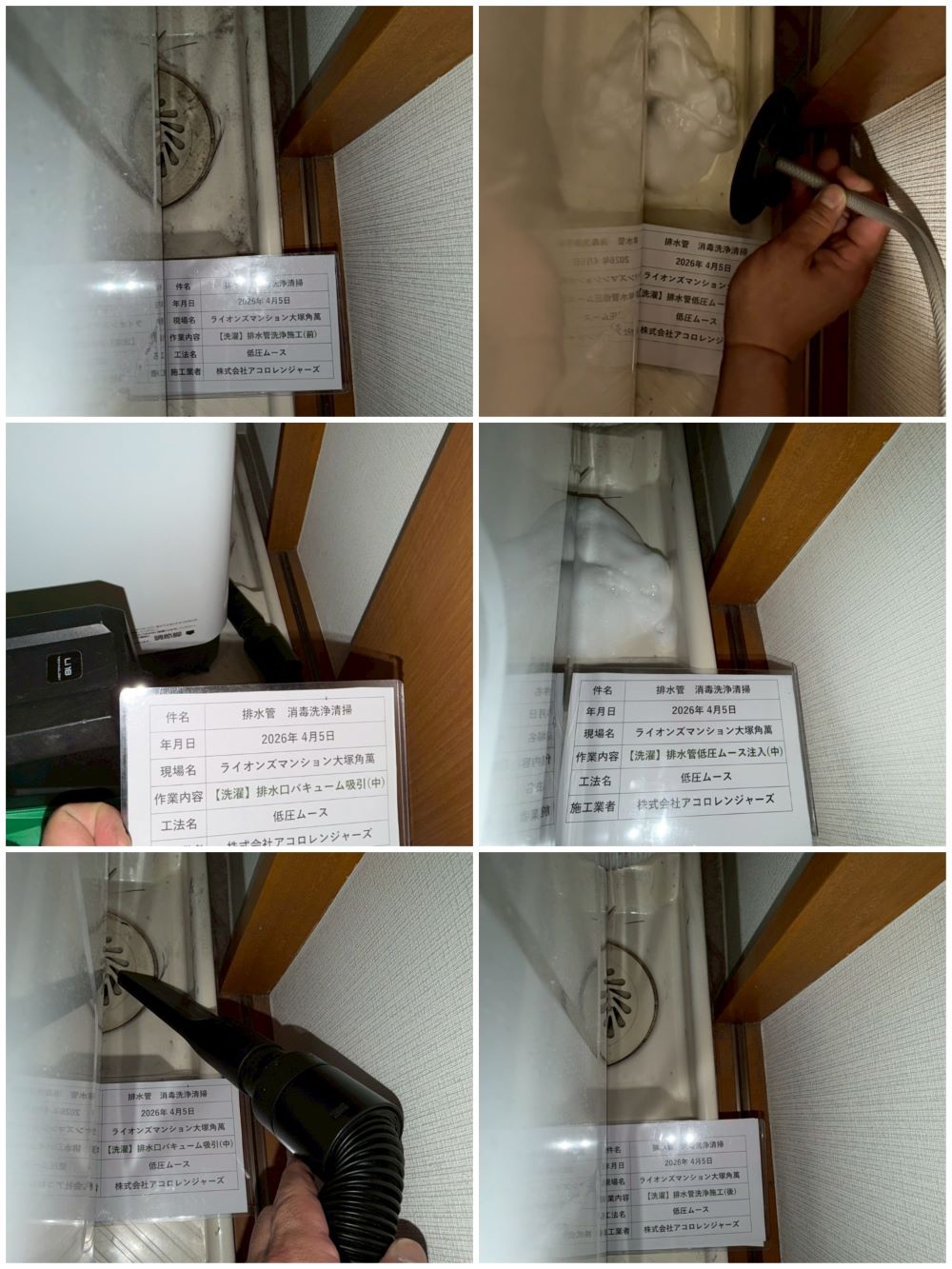 排水管低圧ムース洗浄(台所・洗濯・浴槽・洗面所の各排水管の4点洗浄)